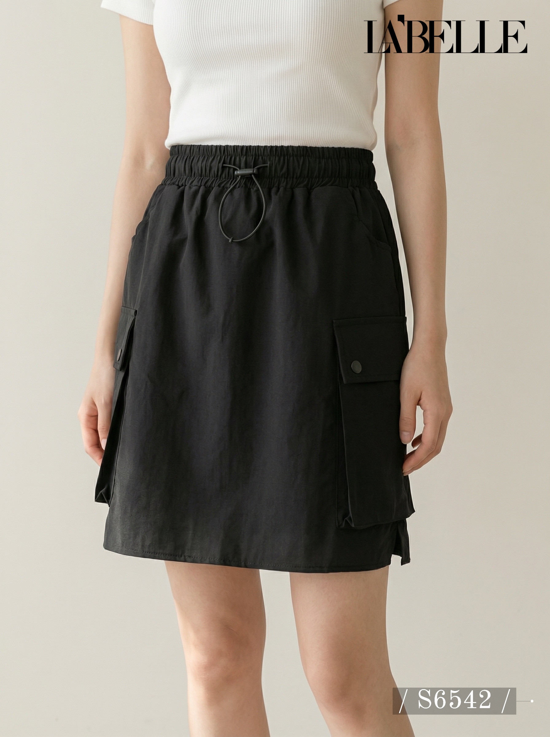 工装风松紧腰抽绳设计高腰短裙 (S6542)