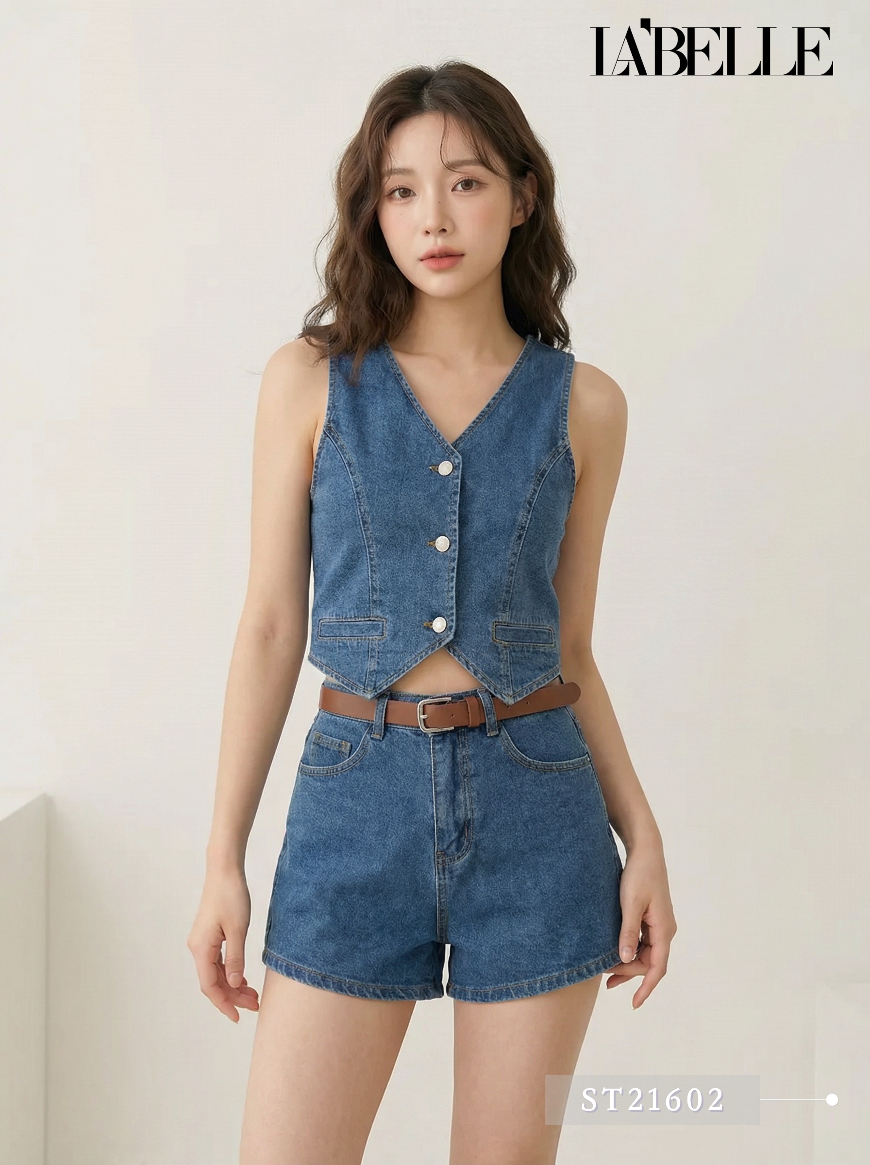 V领开口式马甲设计上衣 + 百搭阔腿高腰短裤 (附送腰带/前后双口袋) ![❤]()